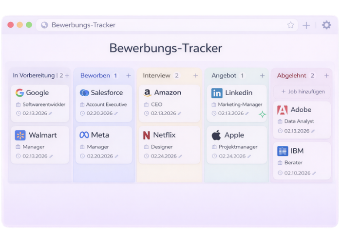 Von KI-gestützten Anschreiben bis zum intelligenten Bewerbungstracker – alles, was Sie für Ihren nächsten Karriereschritt brauchen.
